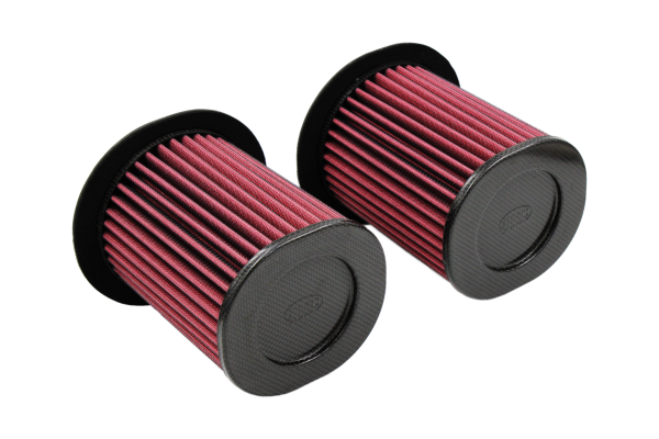 The cylindrical air filter is commonly referred to as "replacement air filter". It is installed in the vehicle's original airbox to replace the OEM air filter. It is made of highly performing materials that allow an increased air flow combined with a more efficient filtration, guaranteeing containment of all impurities from as small as 7 microns (compared to OEM's 10 microns).